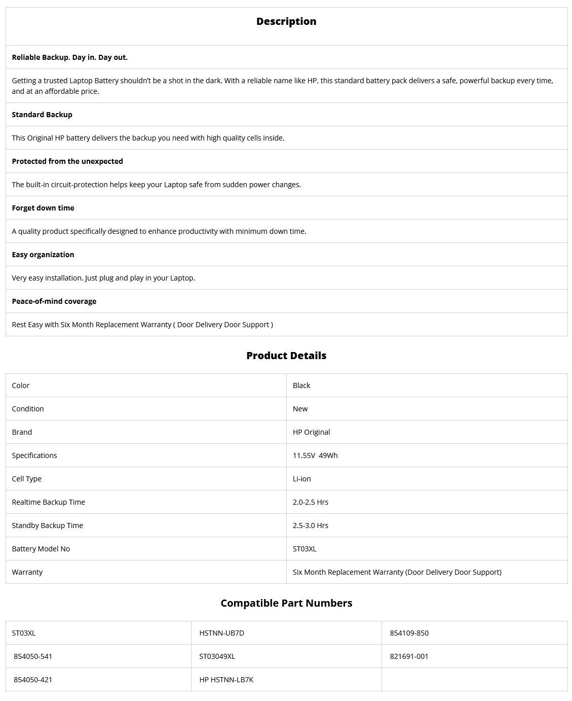 HP EliteBook 820 G3 ( V6J37EC ) – ST03XL Original Laptop Notebook Battery