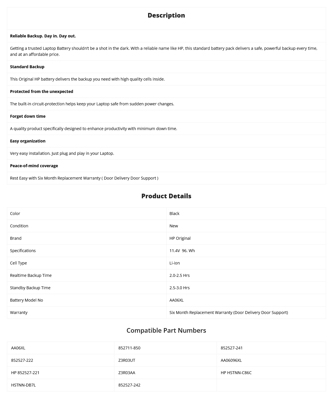 - Supplied Model no will be AA06XL . HP Part no may be Different.
