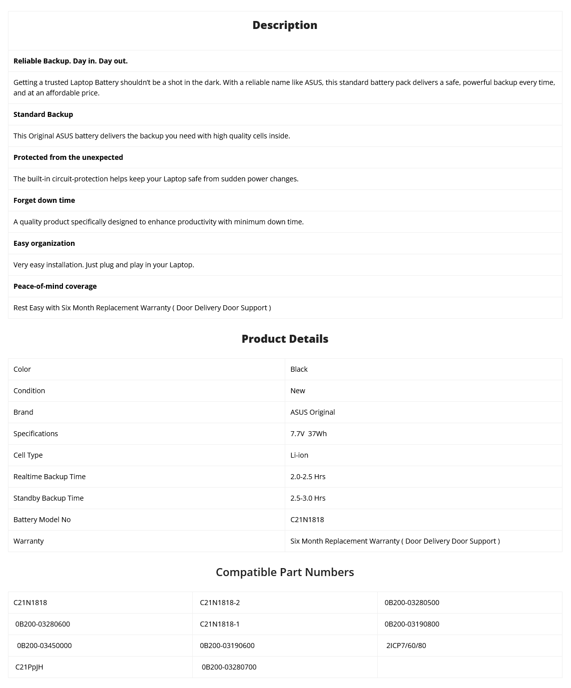 - Supplied Model no will be C21N1818-2 ASUS Part no may be Different.