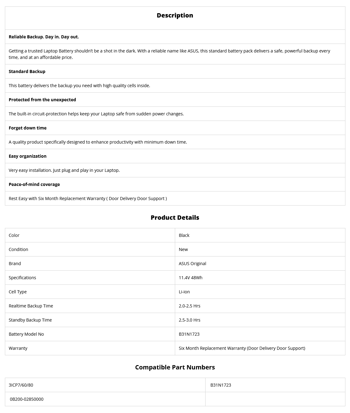 - Supplied Model no will be B31N1723. ASUS Part no may be Different.