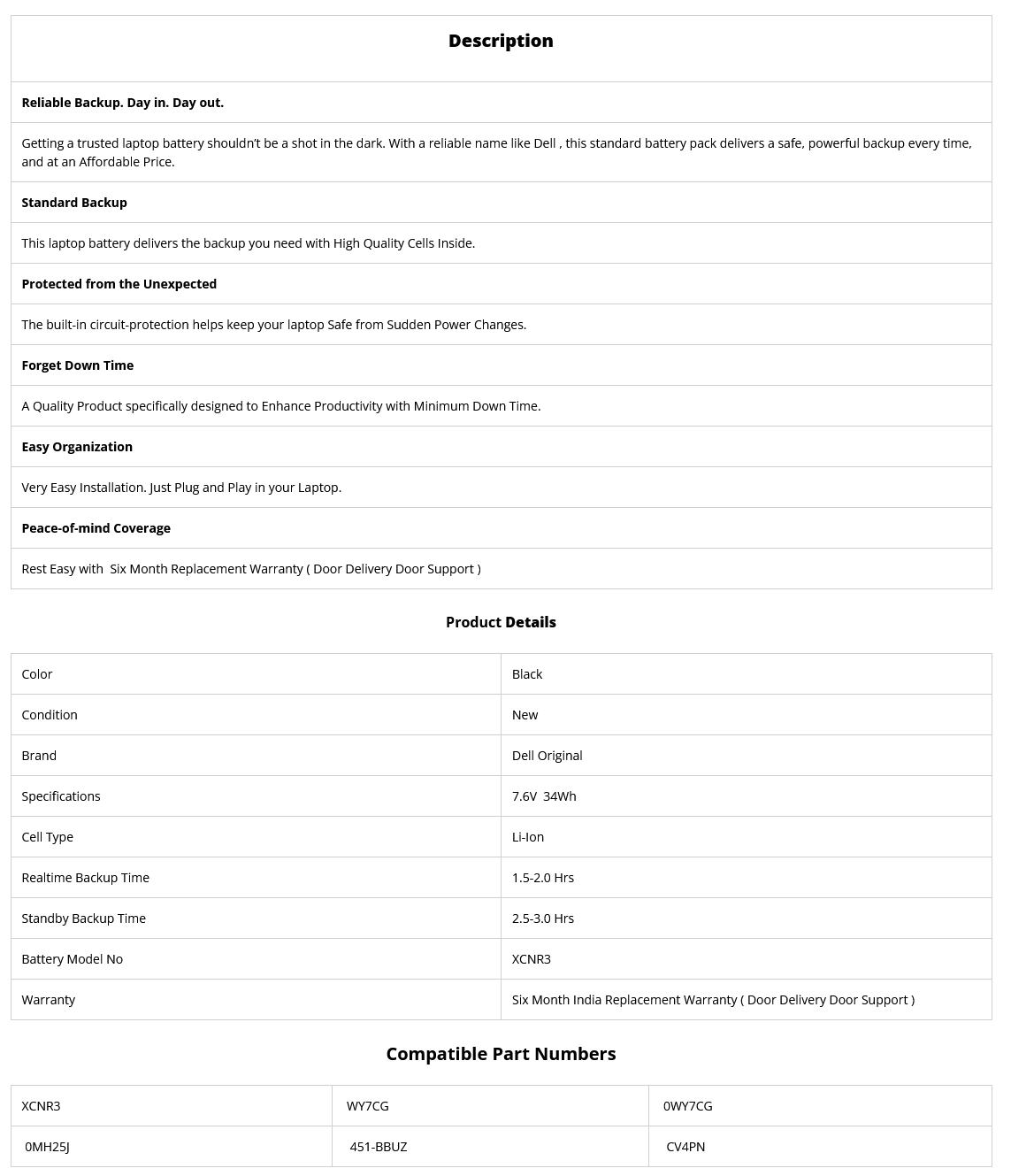 DELL X3PH0 – X3PH0 Genuine Original Laptop Notebook Battery