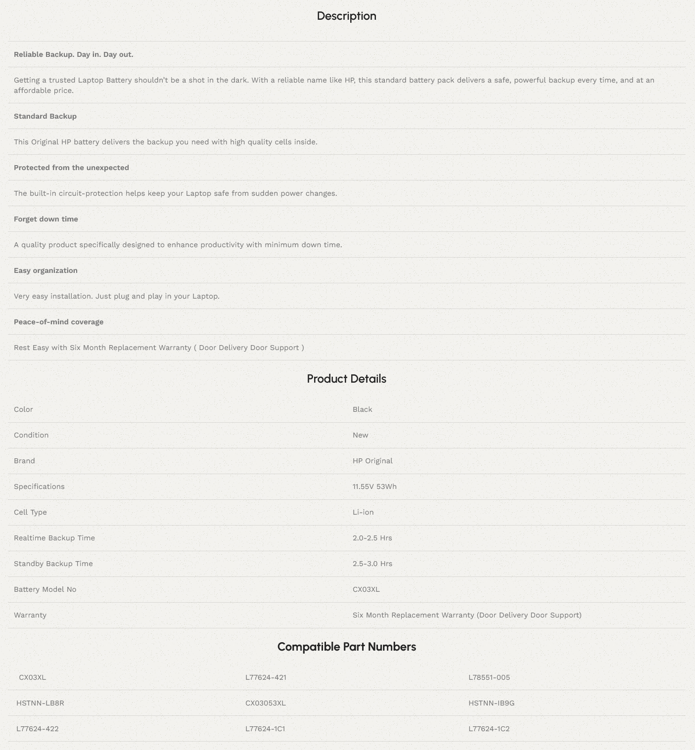 HP CX03XL – CX03XL Original Laptop Notebook Battery DEMO