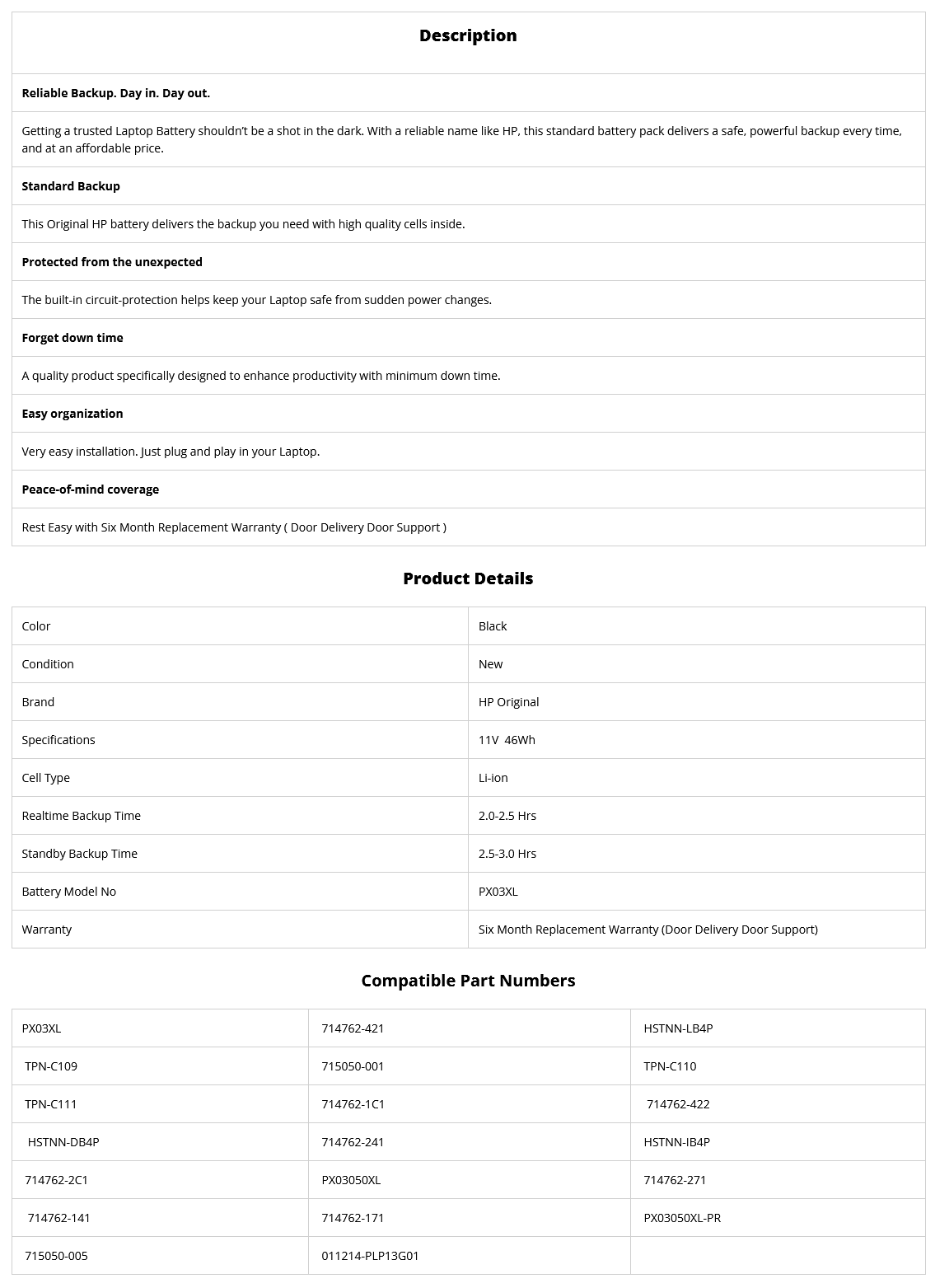 - Supplied Model no will be PX03XL. HP Part no may be Different.