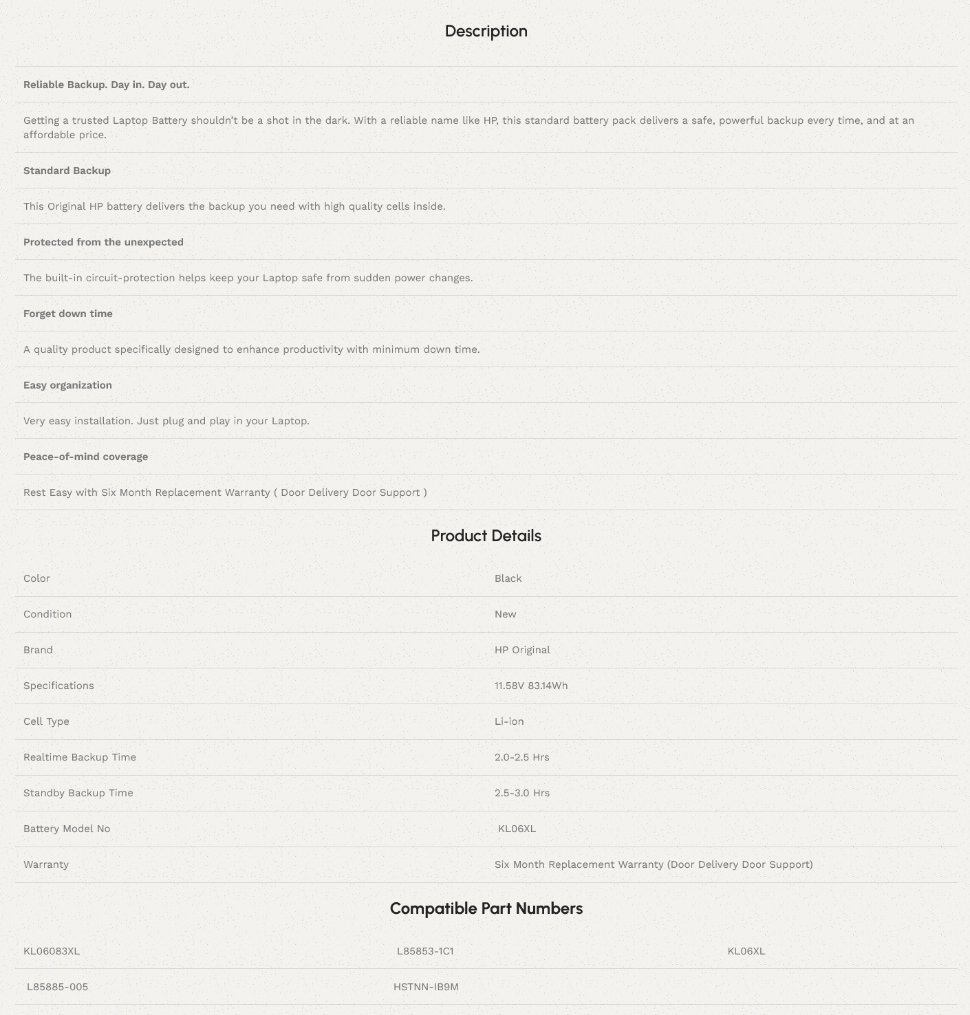 HP KL06XL – KL06XL Original Laptop Notebook Battery DEMO