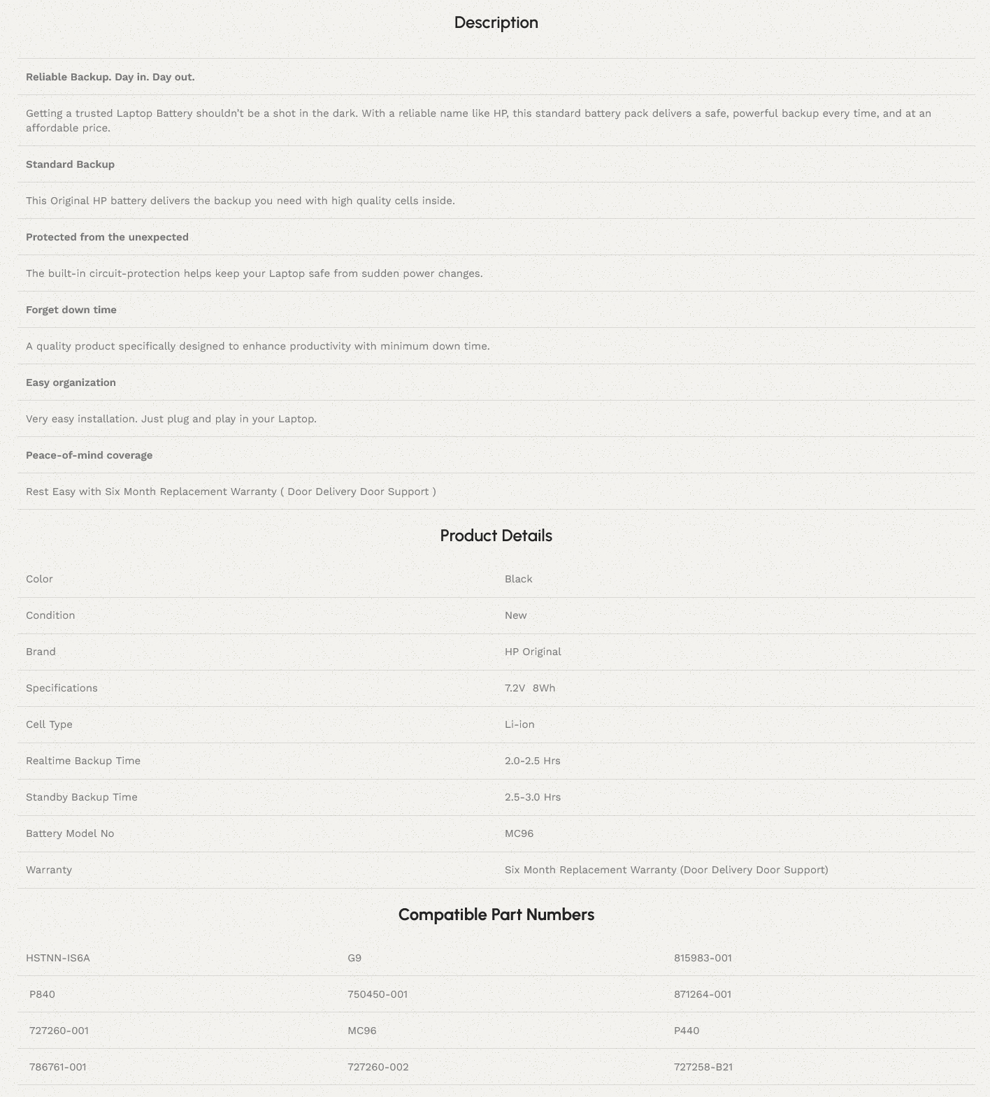 HP MC96 – MC96 Original Laptop Notebook Battery DEMO