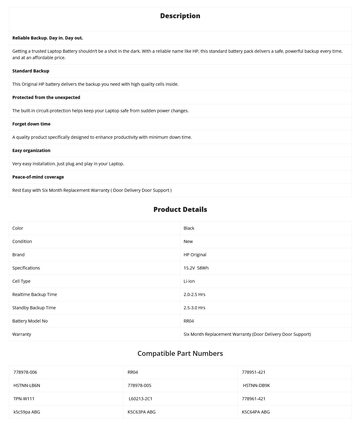 • Supplied Model no will be RR03XL. HP Part no may be Different.