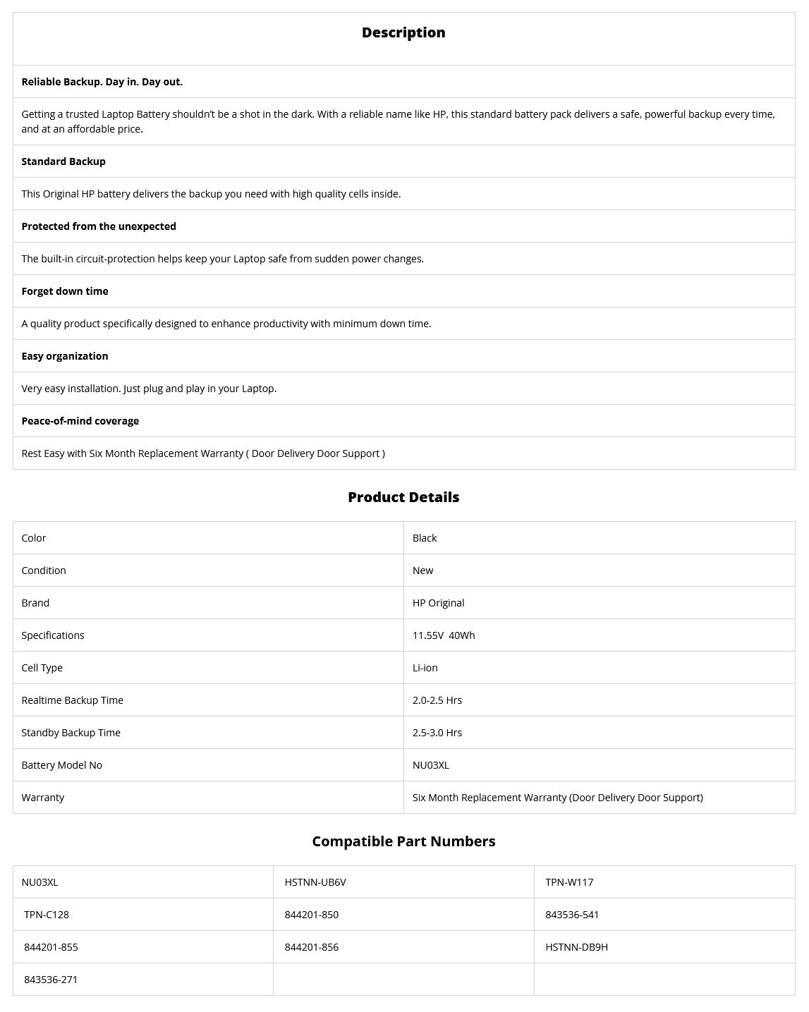 • Supplied Model no will be NU03XL. HP Part no may be Different.