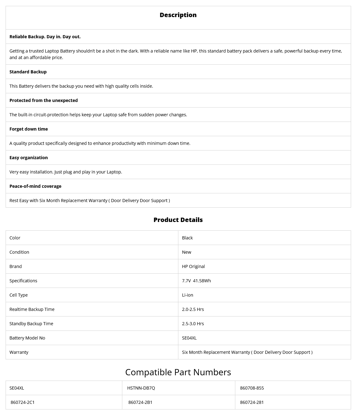 - Supplied Model no will be SE04XL. HP Part no may be Different.