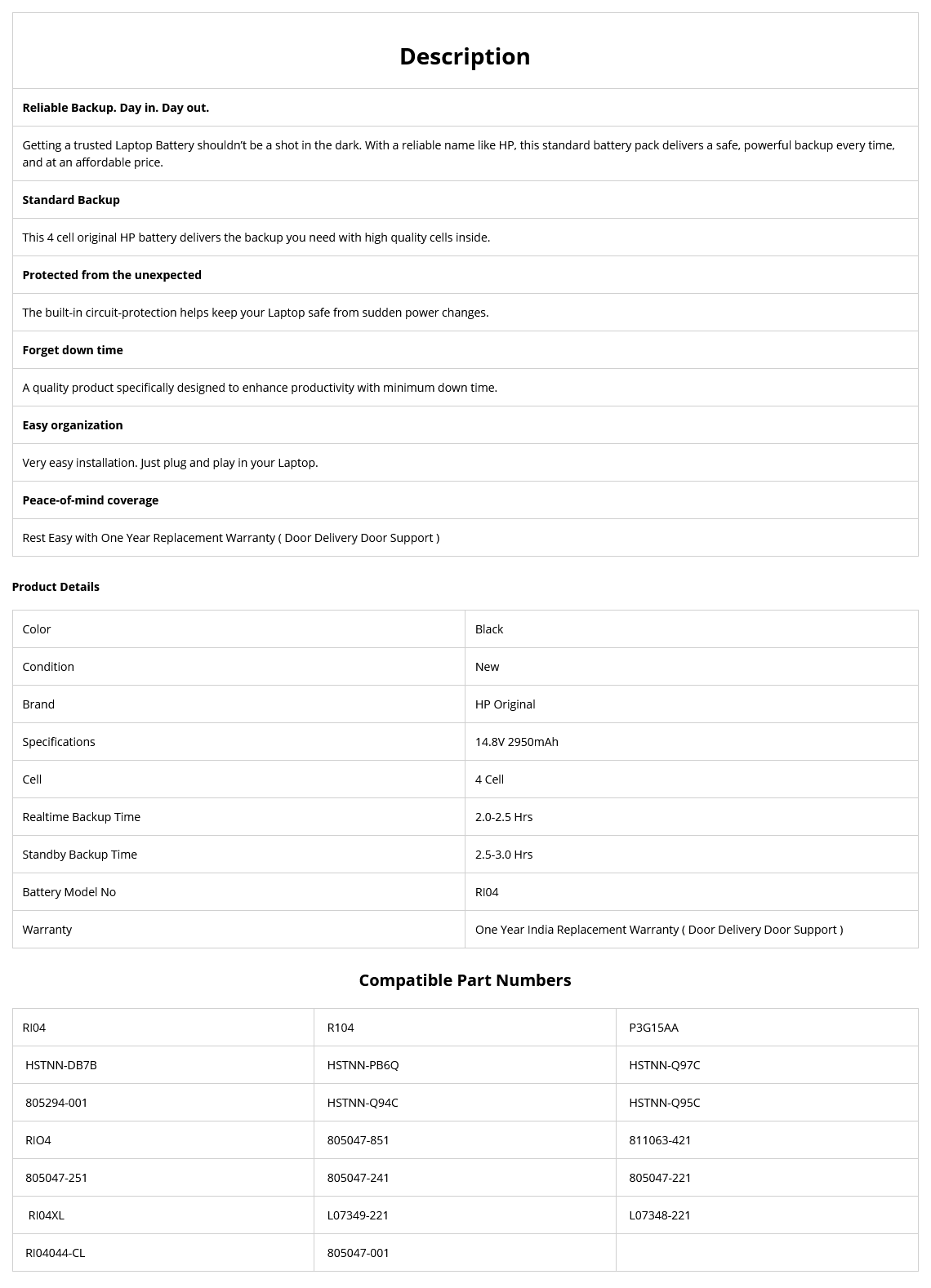 HP R104 – 4 Cell RI04 Original Laptop Notebook Battery