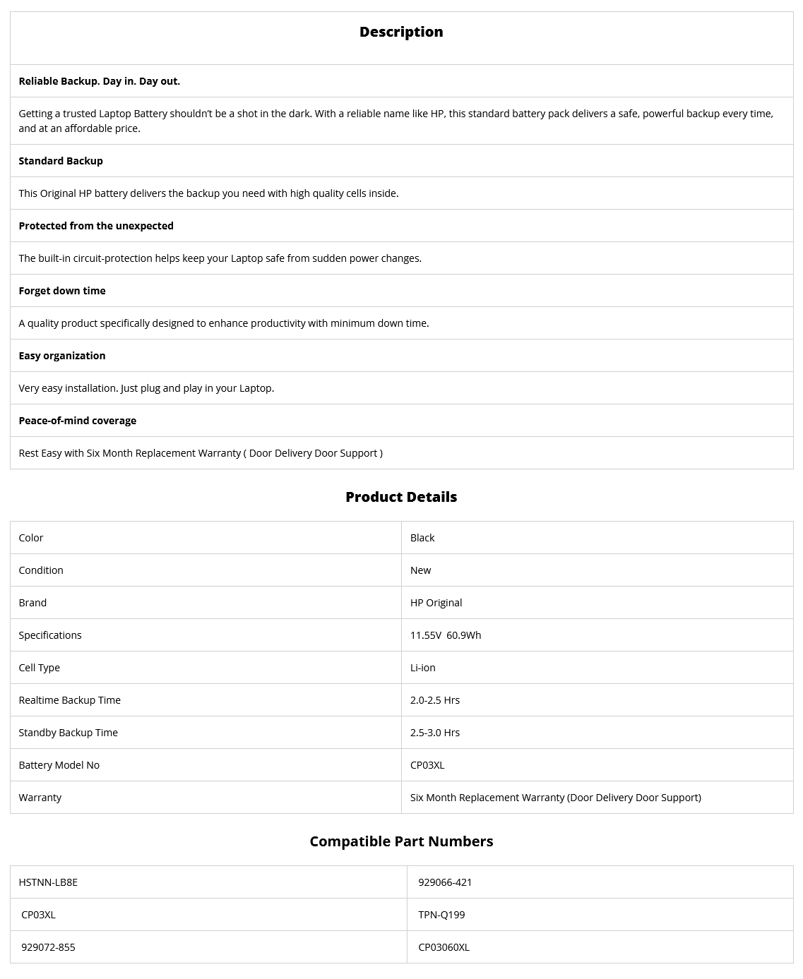 - Supplied Model no will be CP03XL. HP Part no may be Different.
