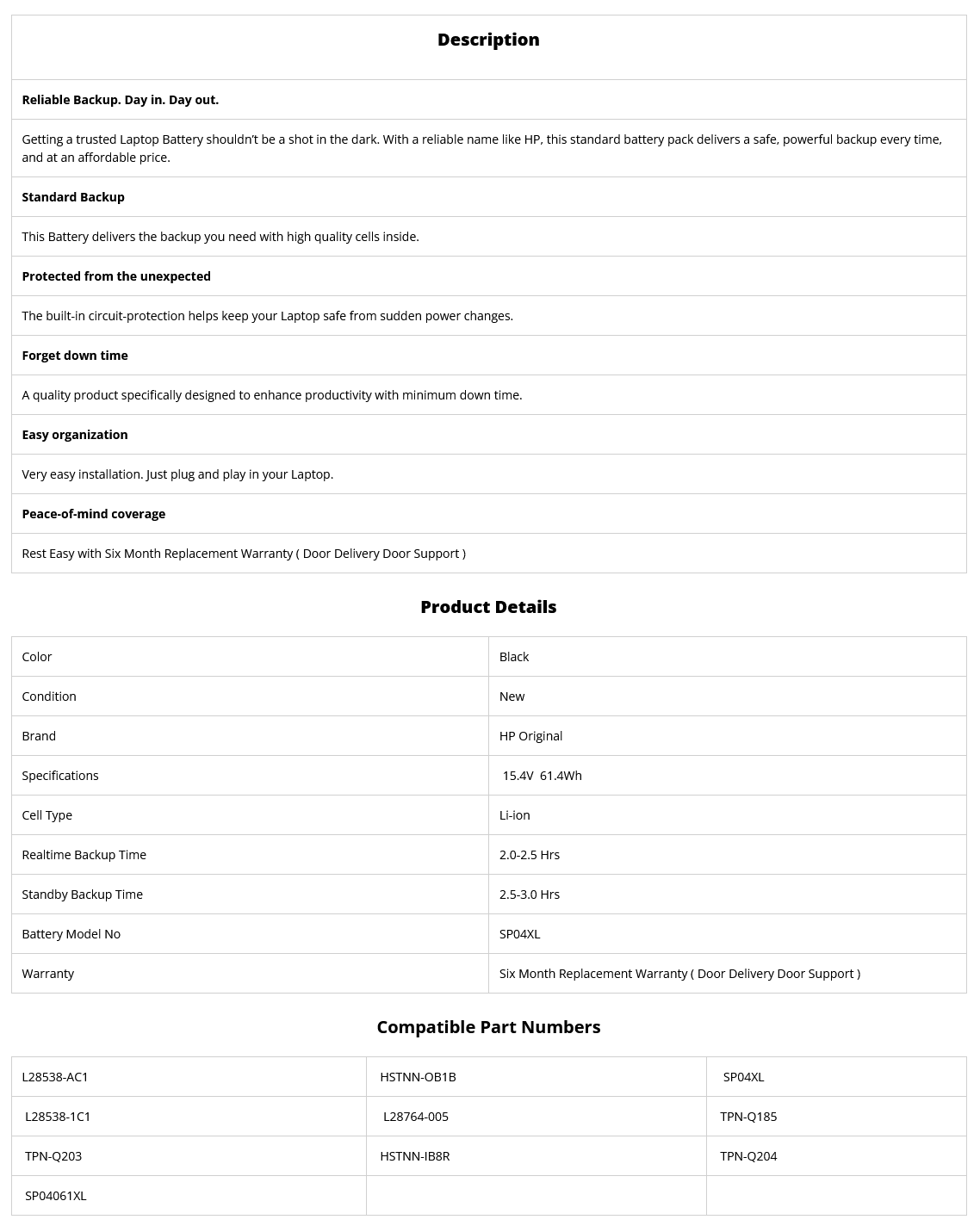 - Supplied Model no will be SP04XL. HP Part no may be different.