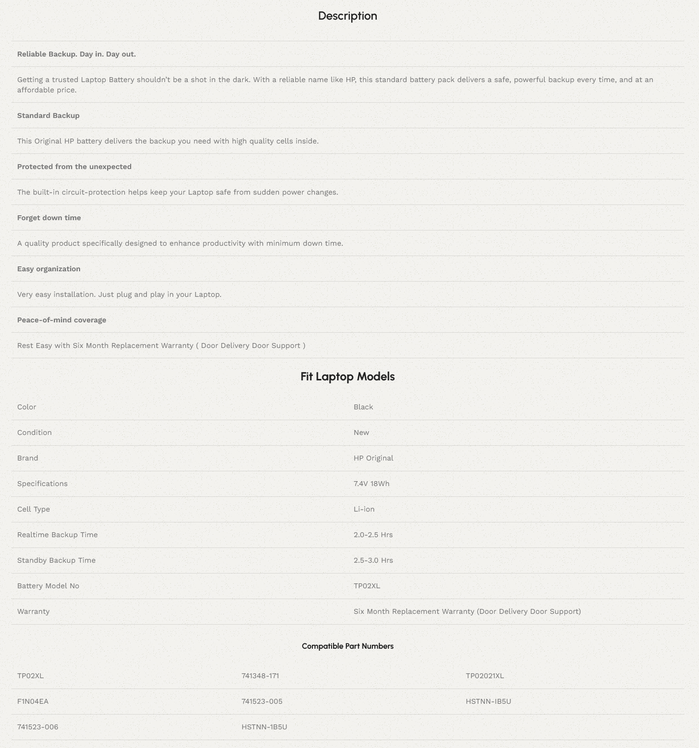 HP TP02XL – TP02XL Original Laptop Notebook Battery DEMO
