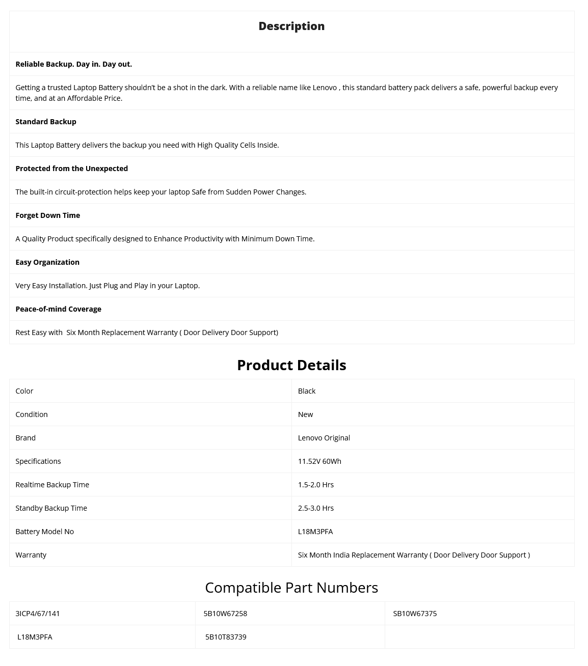 - Supplied Model no will be L18M3PFA Â Lenovo Part no may be Different.