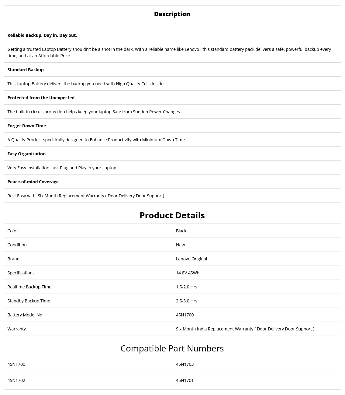 - Supplied Model no will be 45N1700 Lenovo Part no may be Different.
