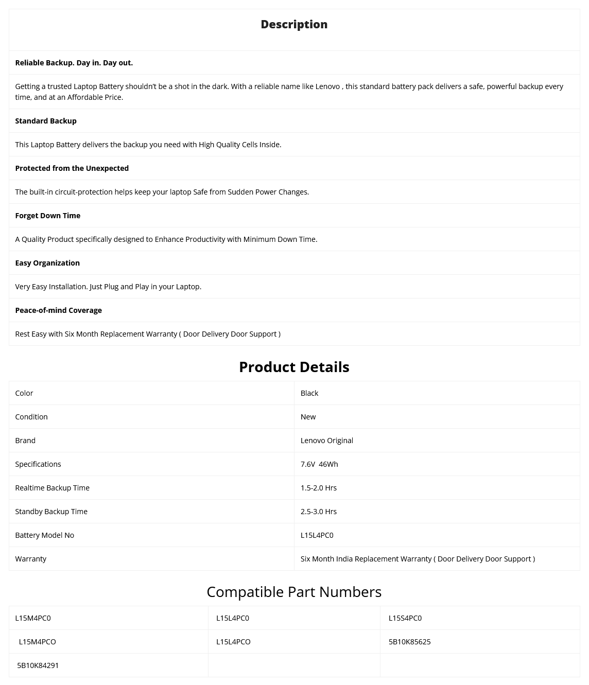 LENOVO 5B10K85625 – L15L4PC0 Original Laptop Notebook Battery
