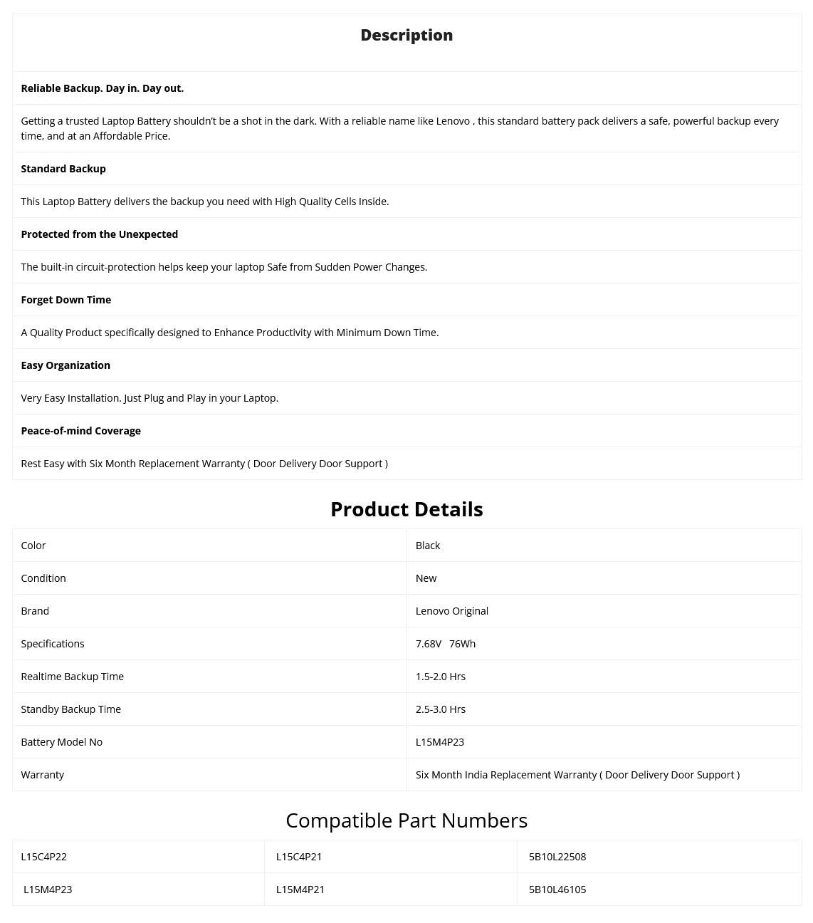 - Supplied Model no will be L15M4P23. Lenovo Part no may be Different.
