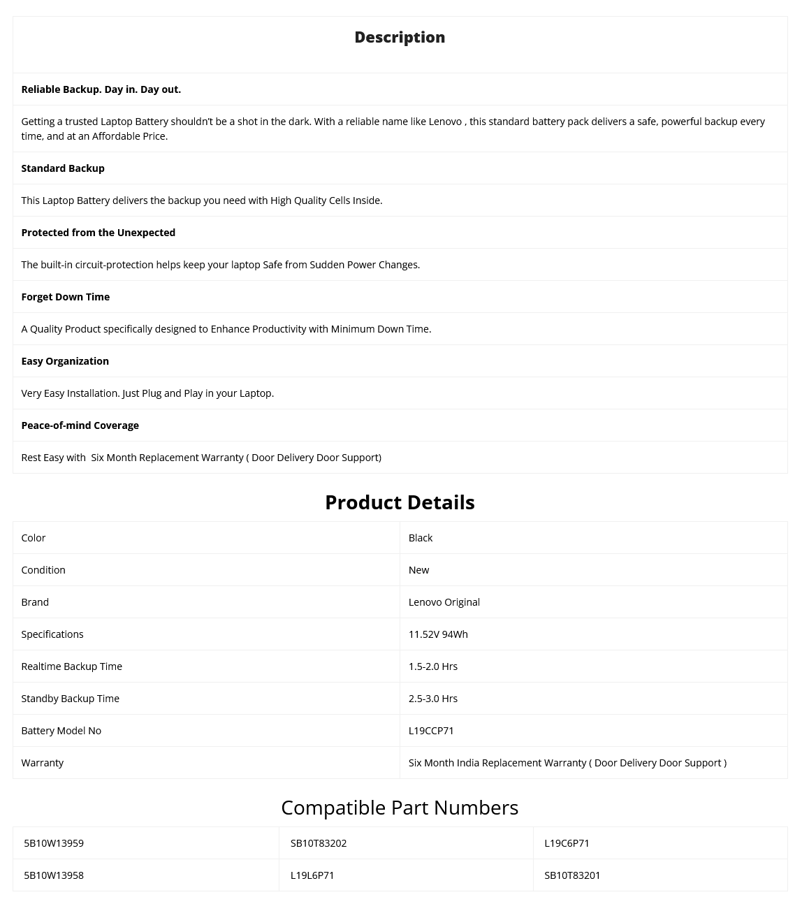 - Supplied Model no will be L19C6P71 Lenovo Part no may be Different.