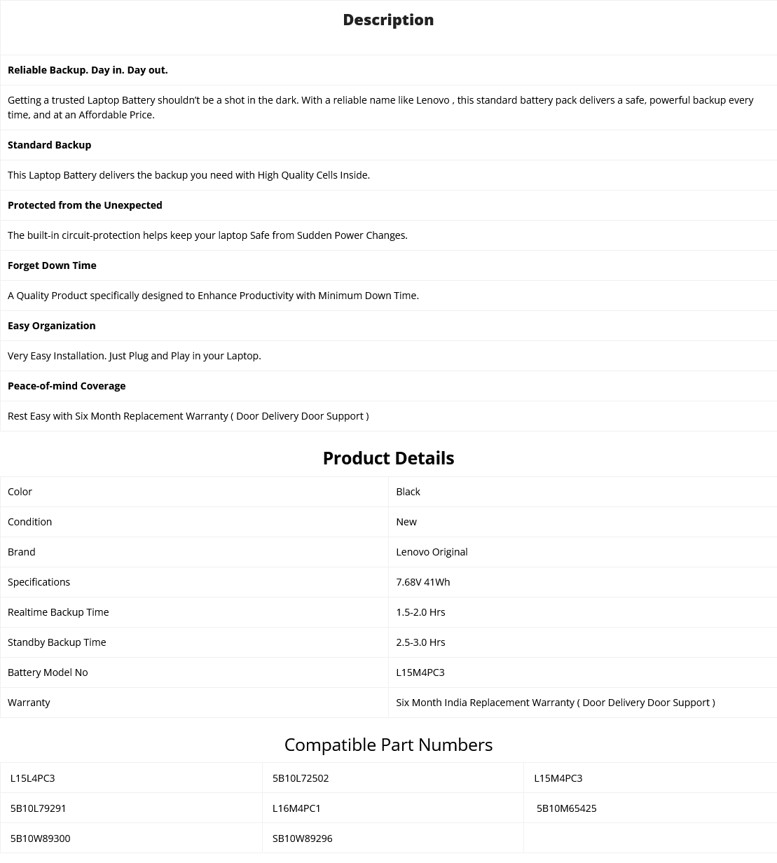 • Supplied Model no will be L15M4PC3. Lenovo Part no may be Different.