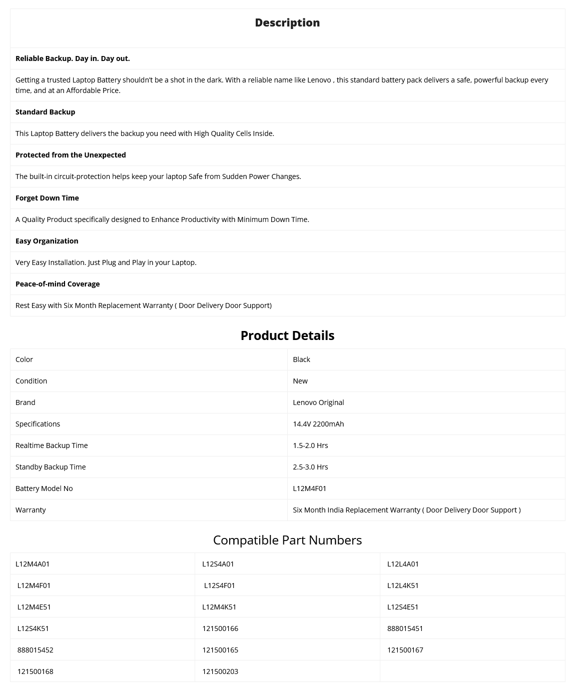- Supplied Model no will be L12M4F01. Lenovo Part no may be Different.