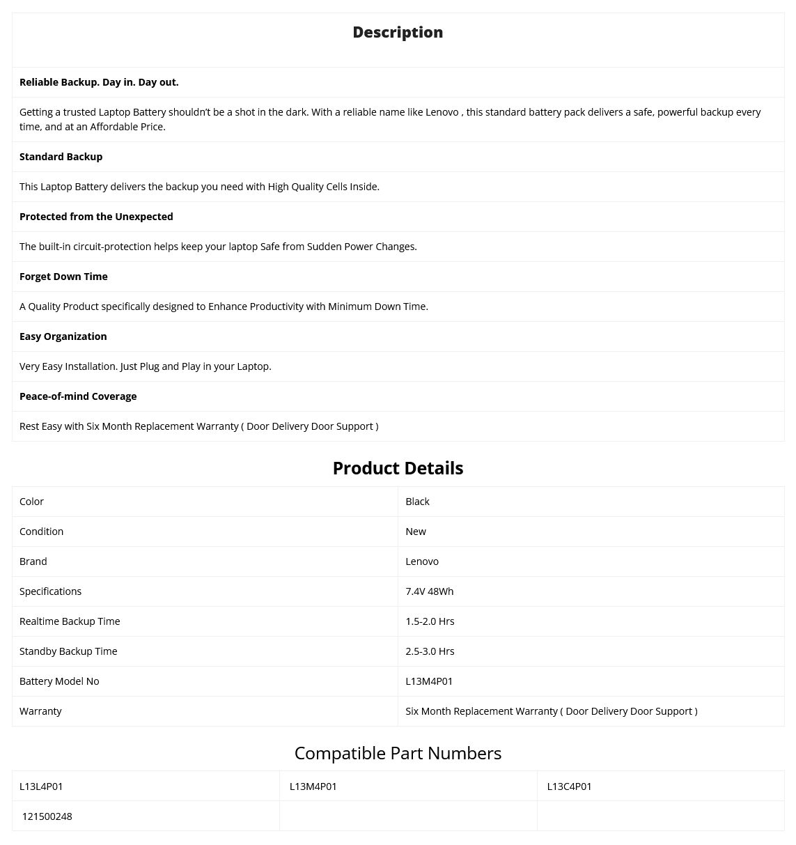 - Supplied Model no will be L13M4P01. Lenovo Part no may be Different.