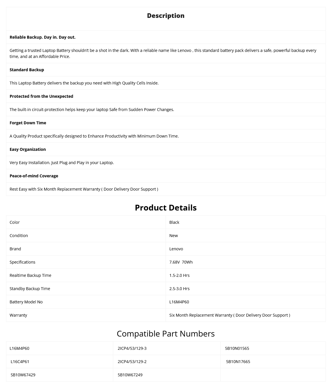 • Supplied Model no will be L16M4P60.Lenovo Part no may be Different.