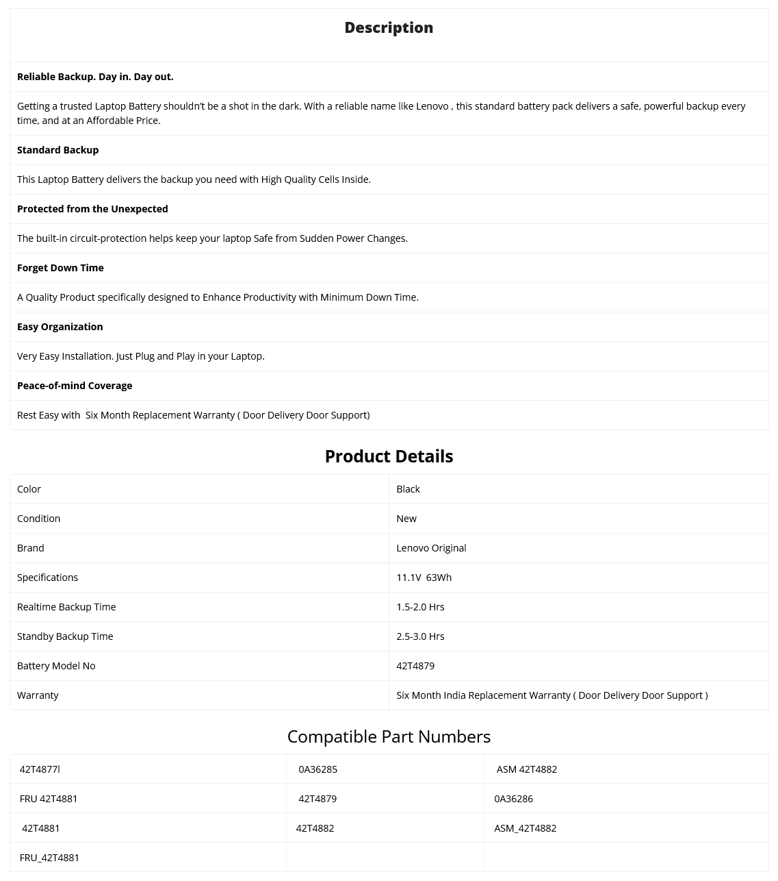 - Supplied Model no will be 42T4879 Lenovo Part no may be Different.