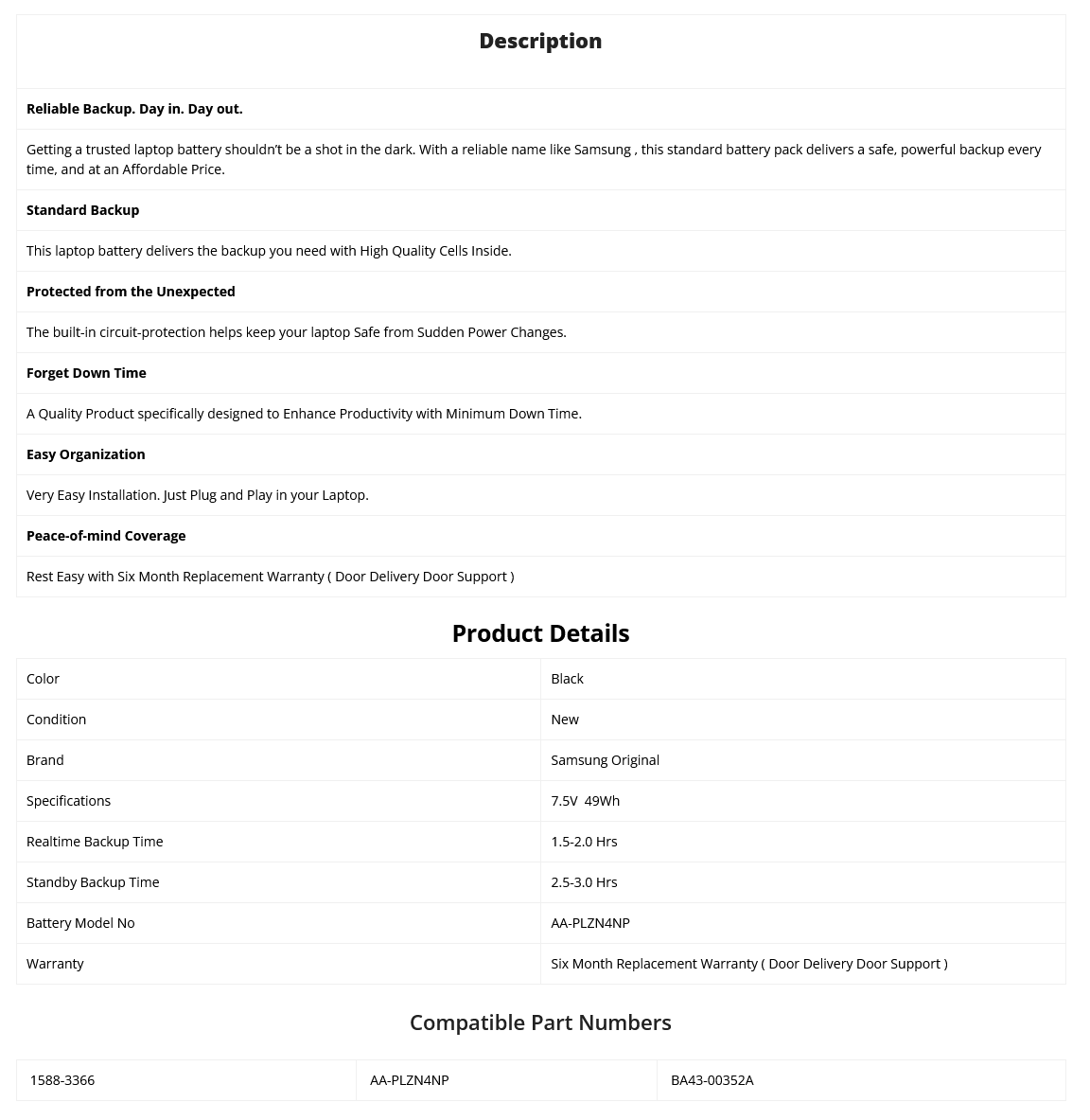 - Rating : 7.5V 49Wh